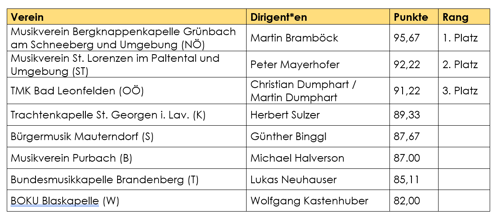 - Bundessieger: Musikverein Bergknappenkapelle Grünbach am Schneeberg (NÖ)